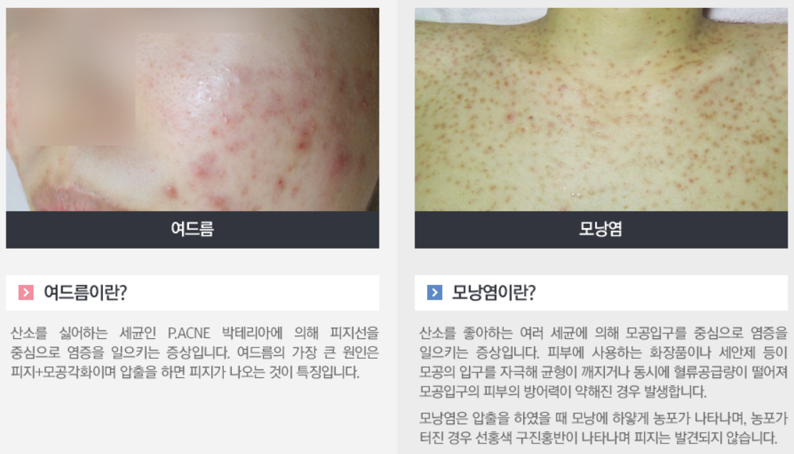 그래서 다시 한번 제대로 피부 상태부터 체크하려고 했는데 원인이나 외형까지 굉장히 비슷한 걸 볼 수가 있었어요.전문가 아닌 한 저 같은 일반인은 단번에 구별하기 어렵다고 생각했어요. 그래서 둘이 어떻게 다른지 명확한 구분이 필요하다고 생각했습니다.
