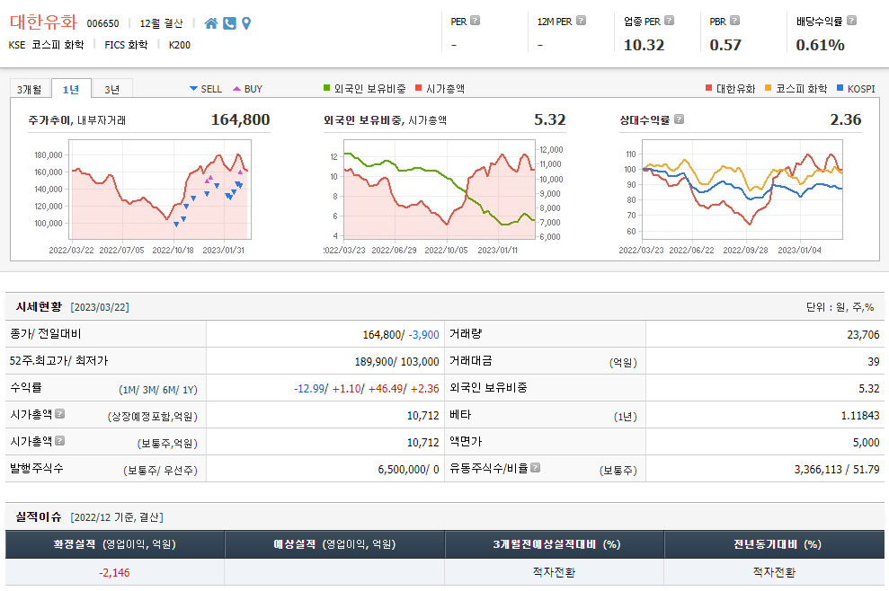 대한유화의 주가 예측, 목표주가 및 기업정보에 대해 기술한 글입니다. 주식을 보기 전에 회사 정보를 검토하고 주가 정보를 보는 것이 매우 중요합니다. 대한유화 주식의 주요현황과 투자정보를 살펴보고 현 시장동향을 파악해 보자.