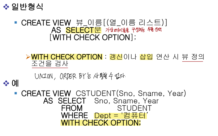 :데이터 정의 언어(DDL): 데이터베이스 스키마를 정의하고 수정하기 위한 명령입니다. 테이블, 뷰, 인덱스, 프로시저, 함수 등을 생성, 수정 또는 삭제할 수 있습니다.