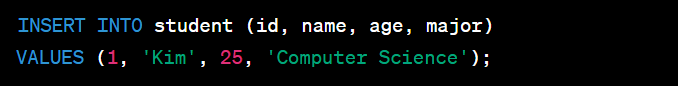 :DML(Data Manipulation Language): 데이터베이스에 저장된 데이터를 검색, 삽입, 수정, 삭제하는 명령어이다. 선택, 삽입, 업데이트, 삭제 등