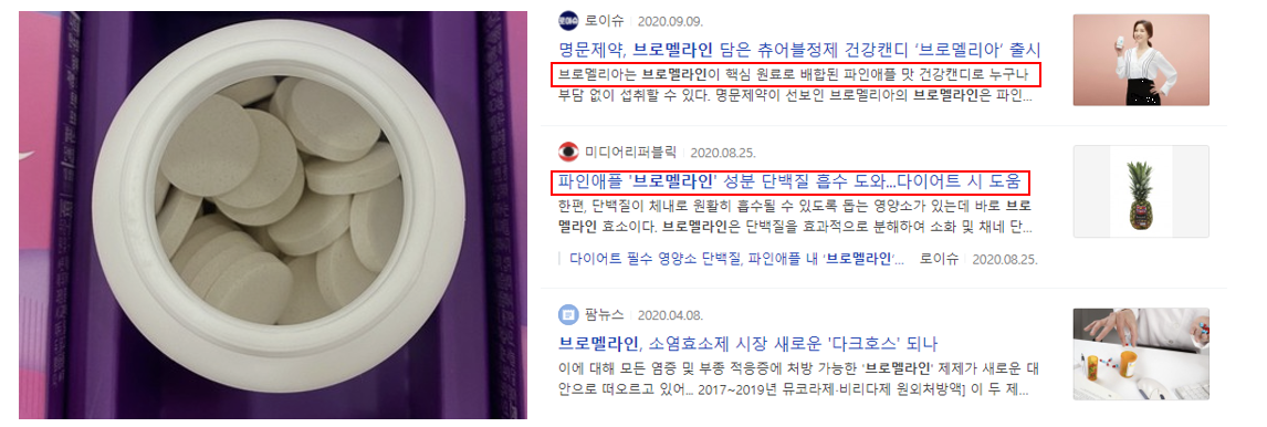 힐미 브로멜라인에 함유된 파인애플에는 단백질 분해 효소인 브로멜라인이 함유되어 있어 체내 단백질을 분해합니다. 이 제품은 우리 몸의 소화에도 도움을 주기 때문에 소화불량으로 먹고 나면 속이 더부룩하다. 나쁘다는게 나쁘다고 생각해서 힘든데 이 부분은 좋은 것 같아요.